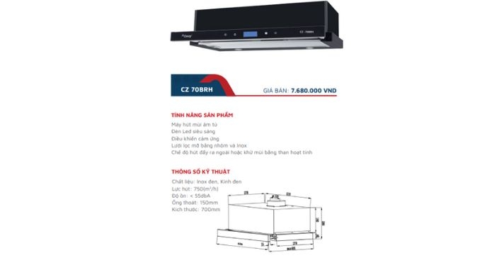 Với thiết kế hiện đại, khả năng hút khử mùi mạnh mẽ và độ ồn thấp, Canzy CZ 70BRH chính là lựa chọn lý tưởng cho những căn bếp cần sự sạch sẽ, thoáng đãng và tiện nghi.